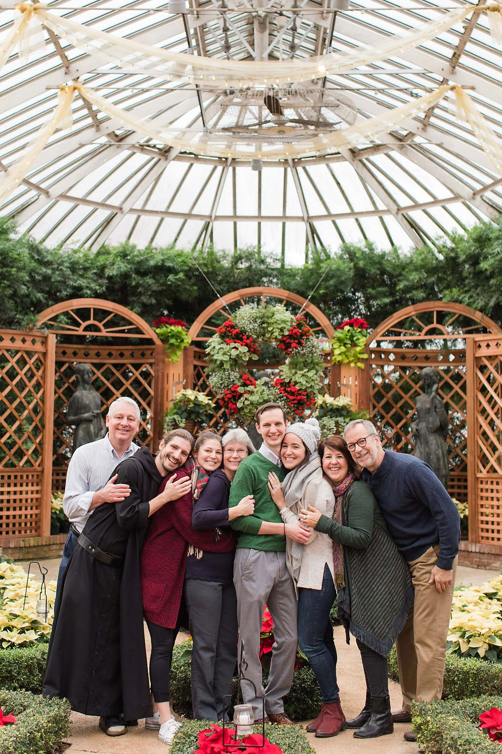 Marc's family was coming into town for a few days, so Marc and Alexandra planned a few days of activities for their families to do together. On Sunday evening, Alexandra's parents, would host Marc's family, for Sunday dinner. Everyone would take off work on Monday, Alexandra's birthday, so that the families could go to Phipps Conservatory's Winter Light Garden the next morning. Alexandra and her parents would meet Marc's family at Phipps at 9am. Unbeknownst to Alexandra, before making these plans, Marc had already reserved the Broderie Room at Phipps for their proposal!