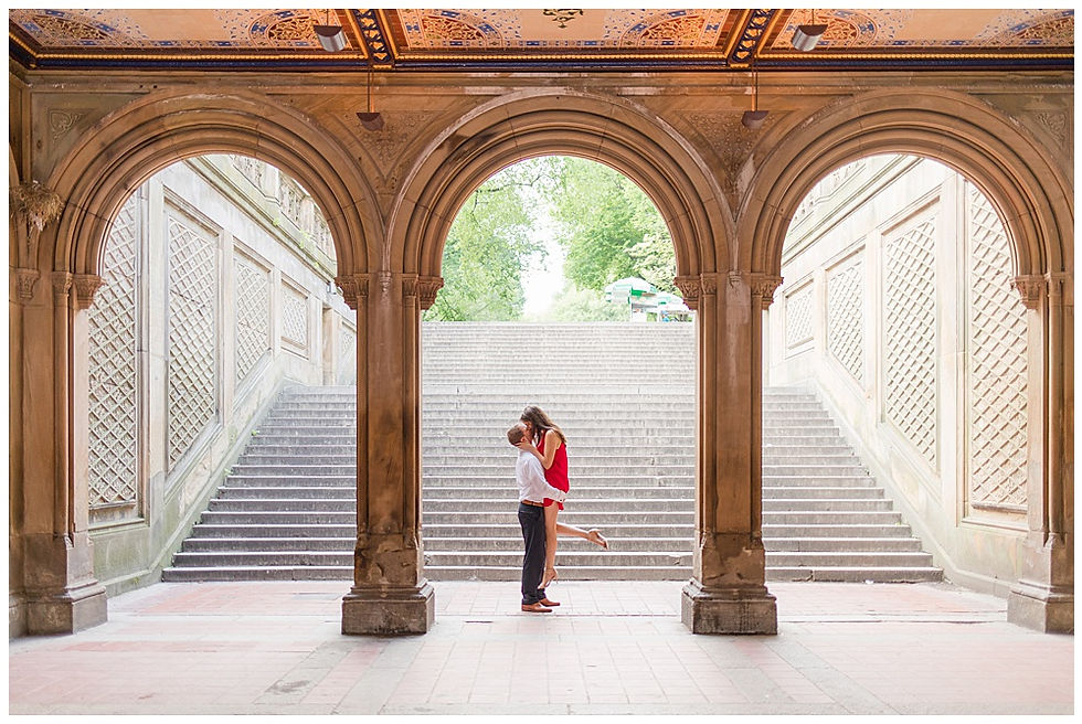 By about 8 AM we were off to Central Park, the Bethesda Terrace, specifically. This picture and archways were especially important to Becca. Growing up nearby, she had always dreamt of her picture with a boy under the archways of the Bethesda Terrace.